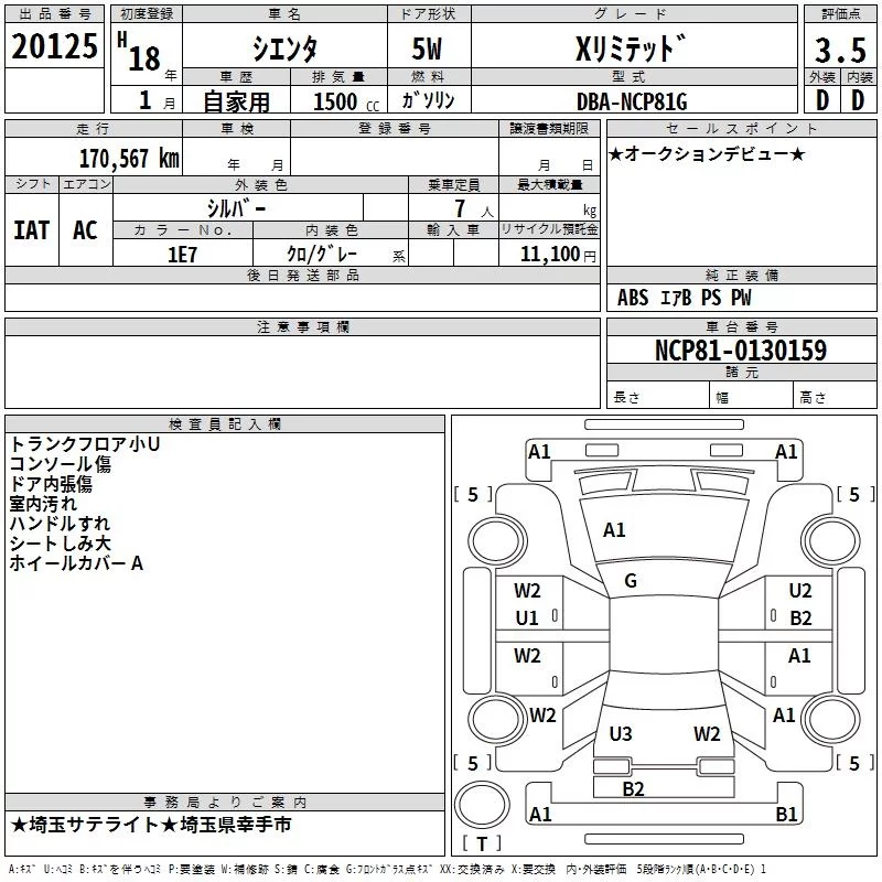 Toyota SIENTA с аукциона Японии TAA Kanto лот № 20125