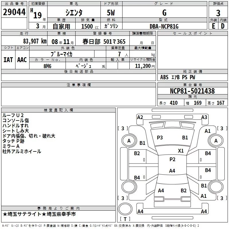 Toyota SIENTA с аукциона Японии TAA Kanto лот № 29044