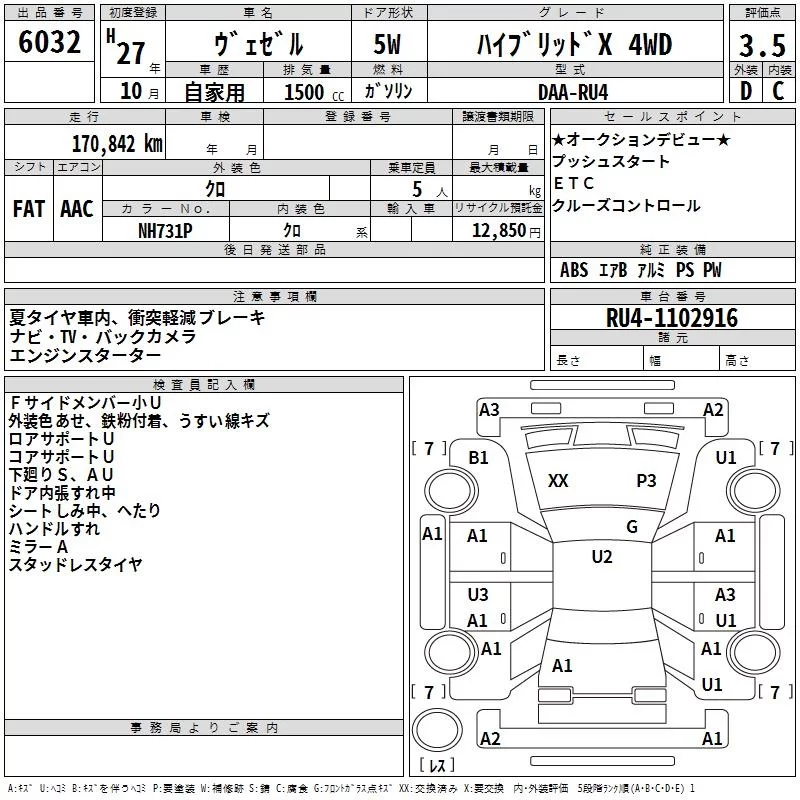 Honda VEZEL с аукциона Японии TAA Hokkaido лот № 6032