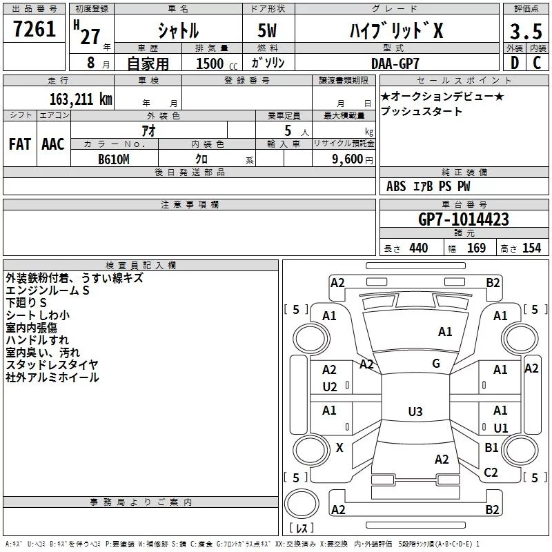 Honda SHUTTLE с аукциона Японии TAA Hokkaido лот № 7261
