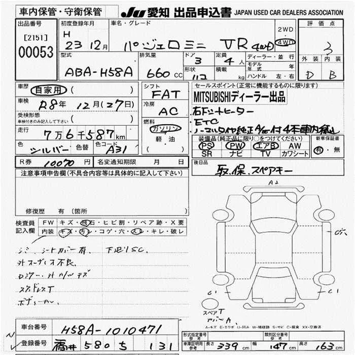Mitsubishi PAJERO MINI с аукциона Японии JU Aichi лот № 53