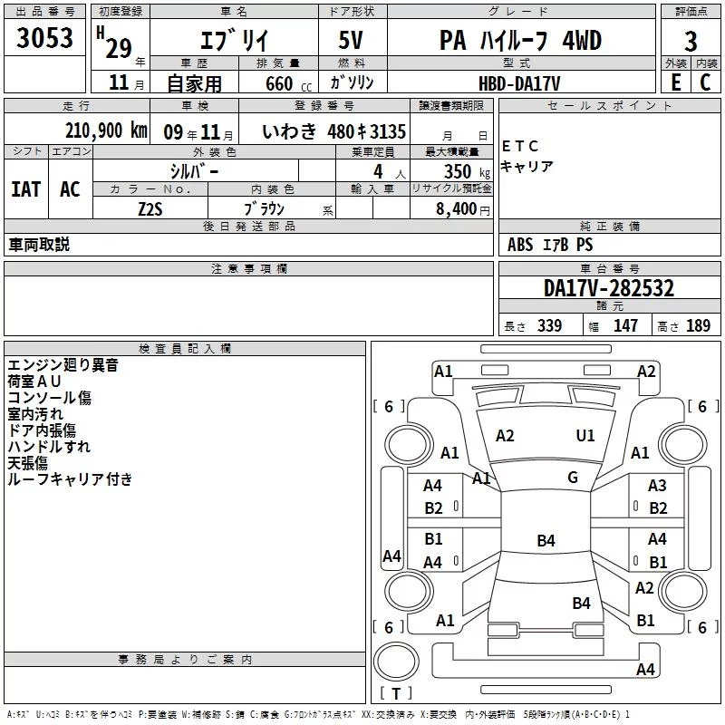 Suzuki EVERY с аукциона Японии TAA Tohoku лот № 3053