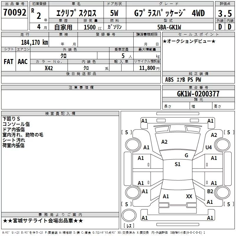 Mitsubishi ECLIPSE CROSS с аукциона Японии TAA Tohoku лот № 70092