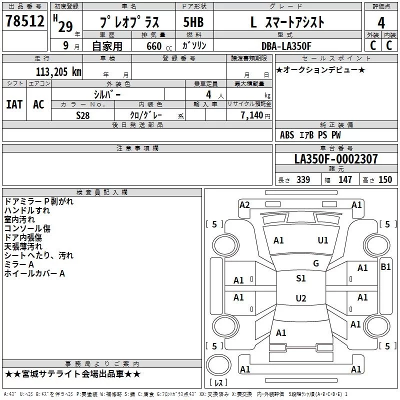 Subaru PLEO PLUS с аукциона Японии TAA Tohoku лот № 78512