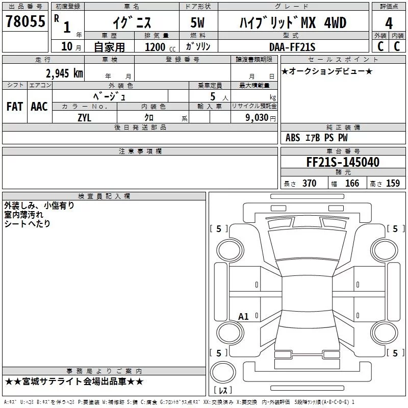 Suzuki IGNIS с аукциона Японии TAA Tohoku лот № 78055