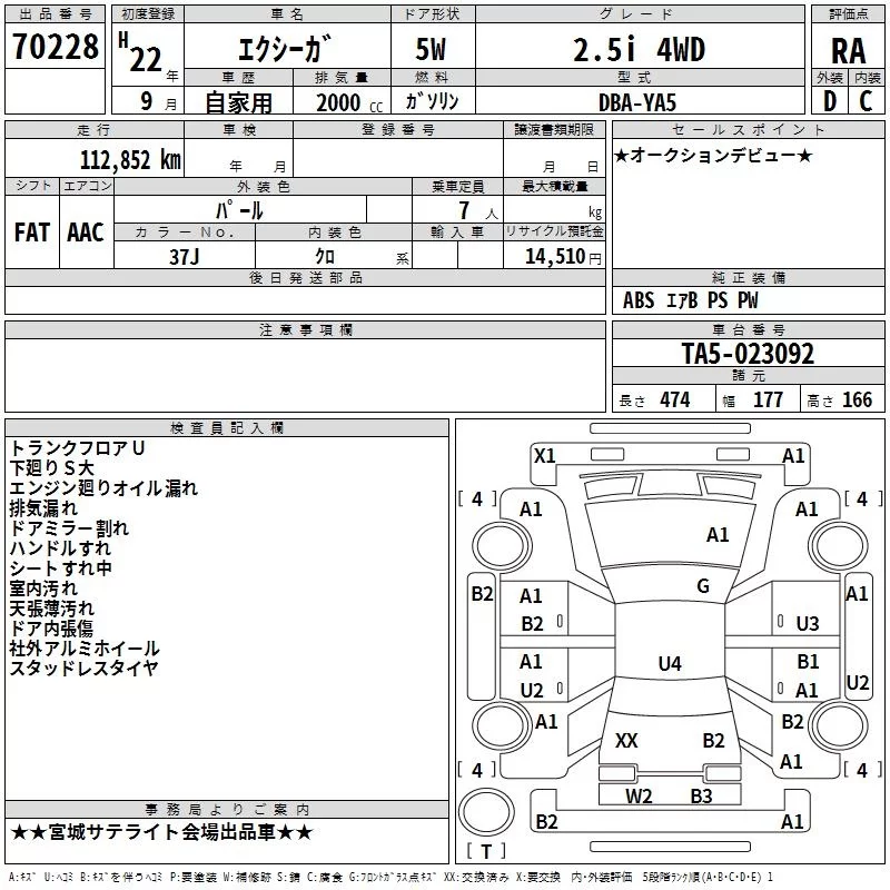 Subaru EXIGA с аукциона Японии TAA Tohoku лот № 70228
