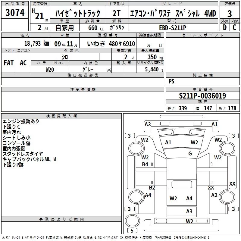 Daihatsu HIJET TRUCK с аукциона Японии TAA Tohoku лот № 3074