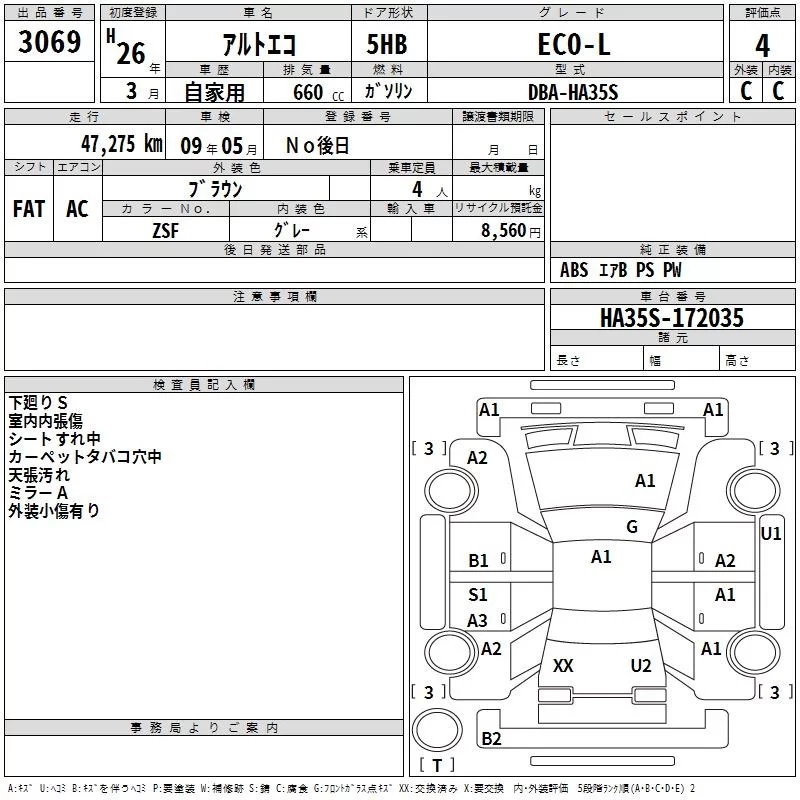 Suzuki ALTO ECO с аукциона Японии TAA Tohoku лот № 3069