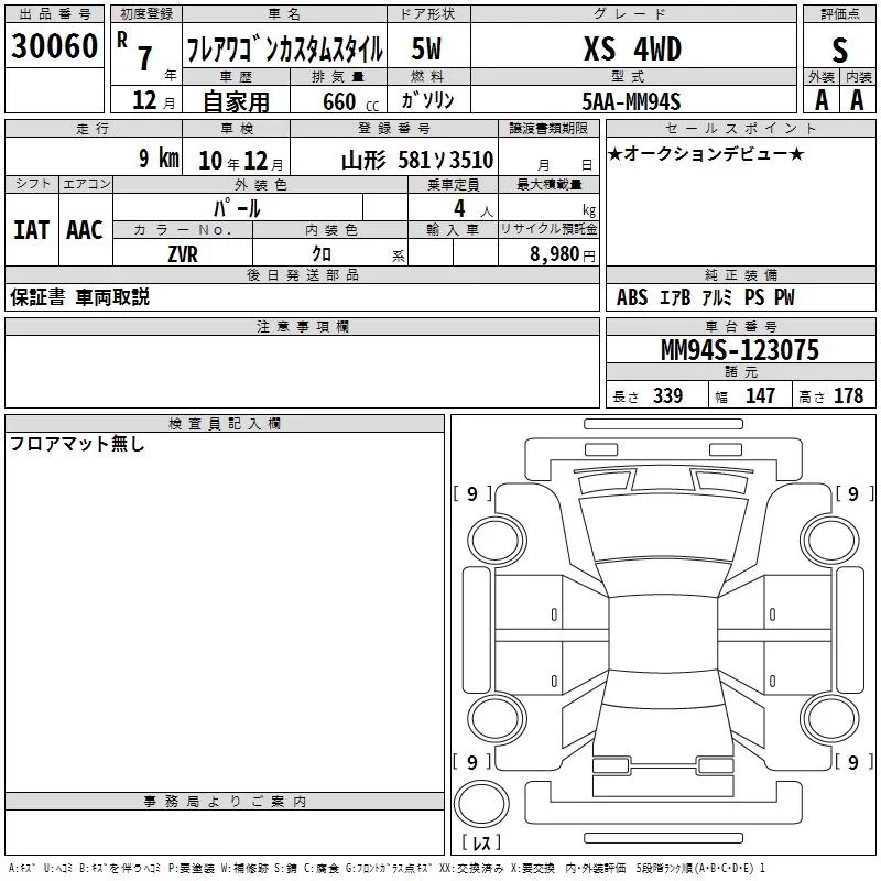 Mazda FLAIR WAGON с аукциона Японии TAA Tohoku лот № 30060