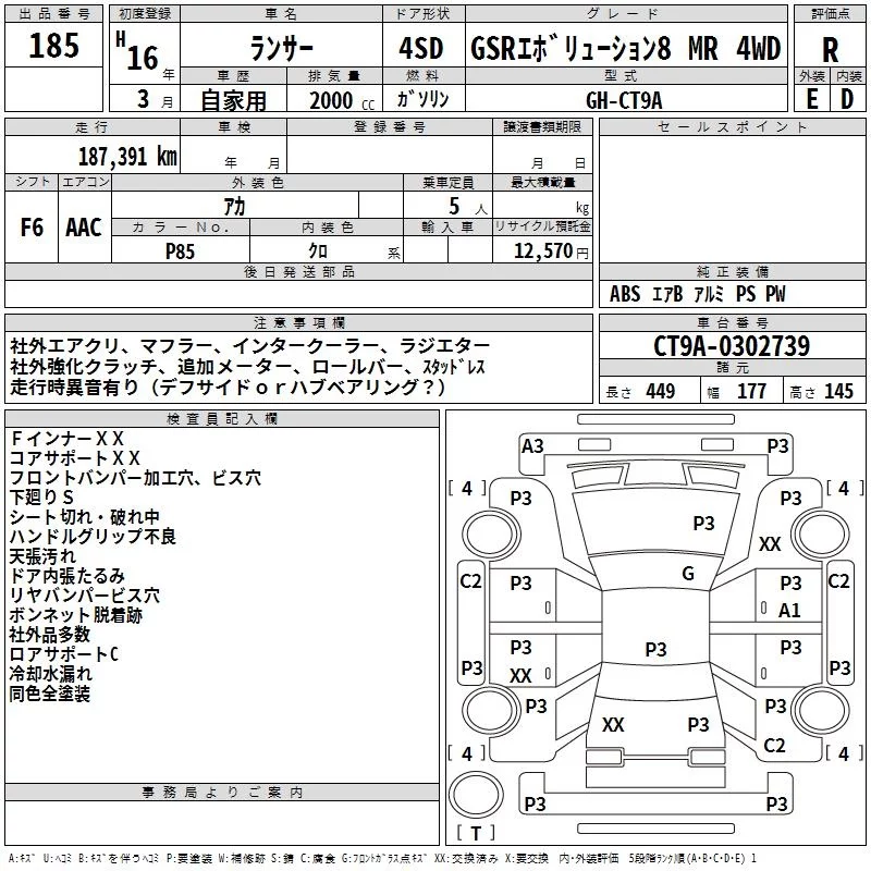 Mitsubishi LANCER с аукциона Японии TAA Tohoku лот № 185