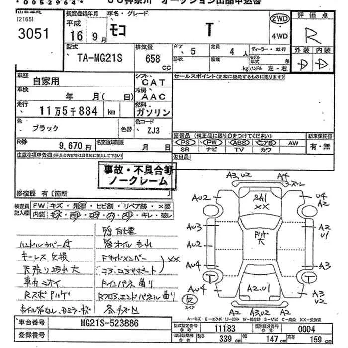 Nissan MOCO с аукциона Японии JU Kanagawa лот № 3051