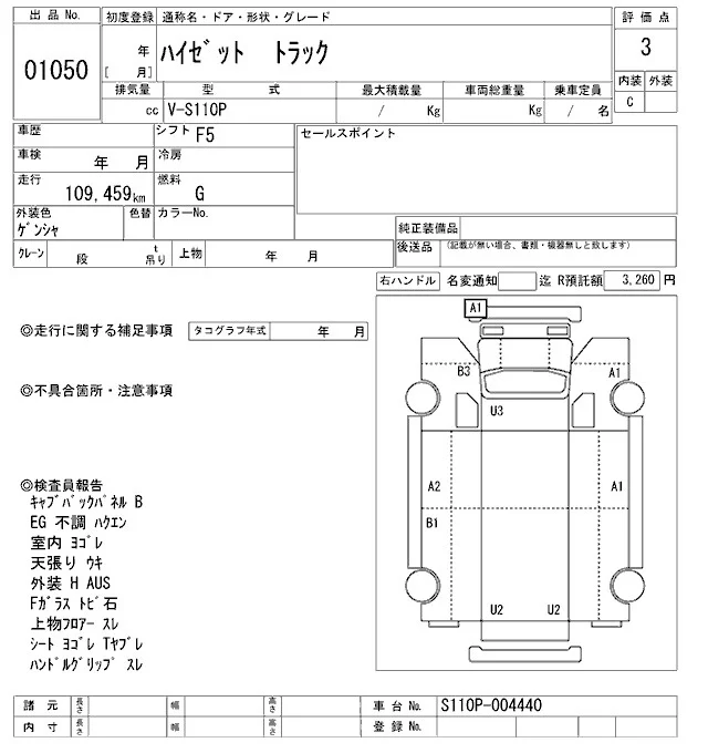 Daihatsu HIJET TRUCK с аукциона Японии ARAI Oyama лот № 1050