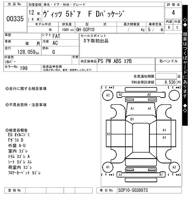 Toyota VITZ с аукциона Японии ARAI Oyama лот № 335