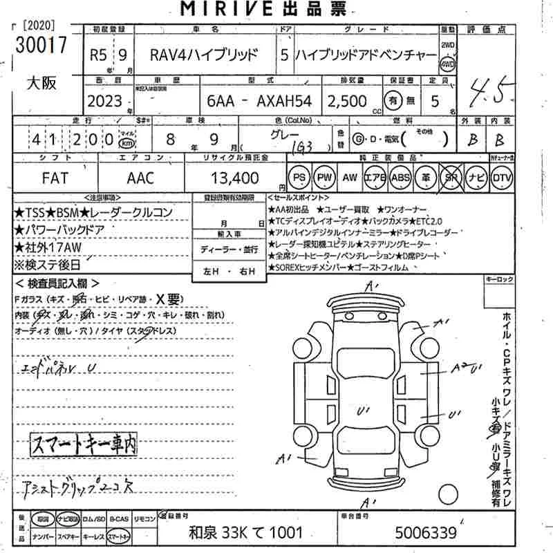 Toyota RAV4 с аукциона Японии MIRIVE Osaka лот № 30017