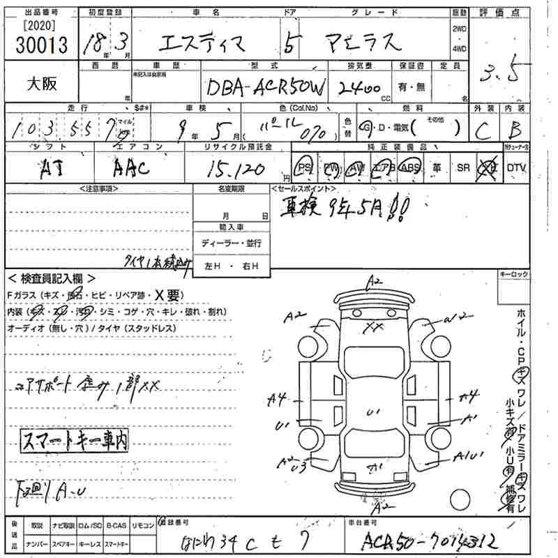 Toyota ESTIMA с аукциона Японии MIRIVE Osaka лот № 30013