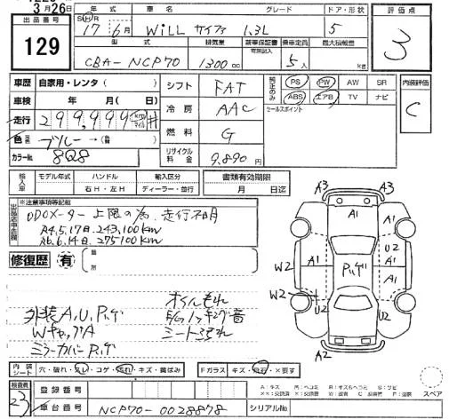 Toyota WILL с аукциона Японии SUZUKI AA Hamamatsu лот № 129