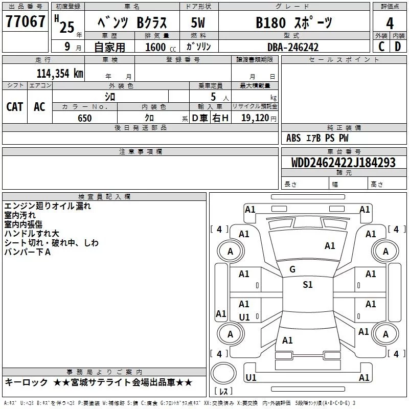 Mercedes-Benz B CLASS с аукциона Японии TAA Tohoku лот № 77067