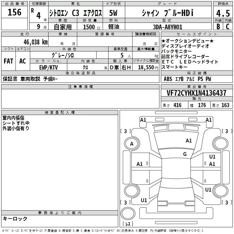 Citroen C3 с аукциона Японии TAA Tohoku лот № 156