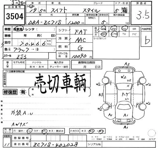 Suzuki SWIFT с аукциона Японии SUZUKI AA Hamamatsu лот № 3504