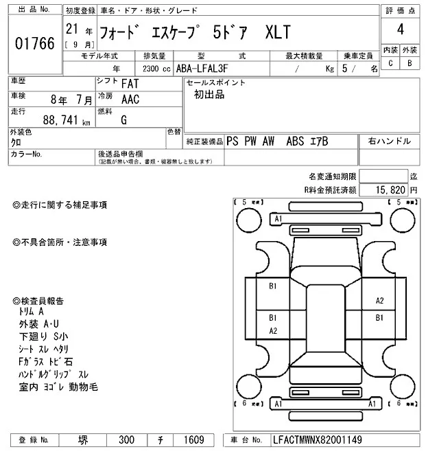 Ford ESCAPE с аукциона Японии ARAI Oyama лот № 1766