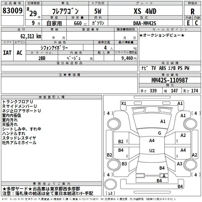 Mazda FLAIR WAGON с аукциона Японии TAA Kanto лот № 83009