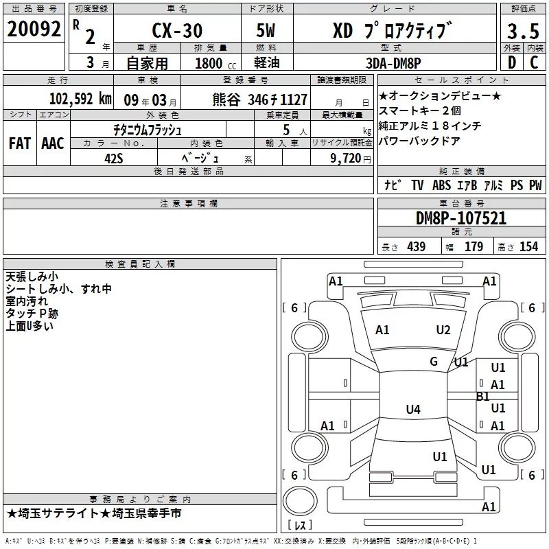 Mazda CX-30 с аукциона Японии TAA Kanto лот № 20092