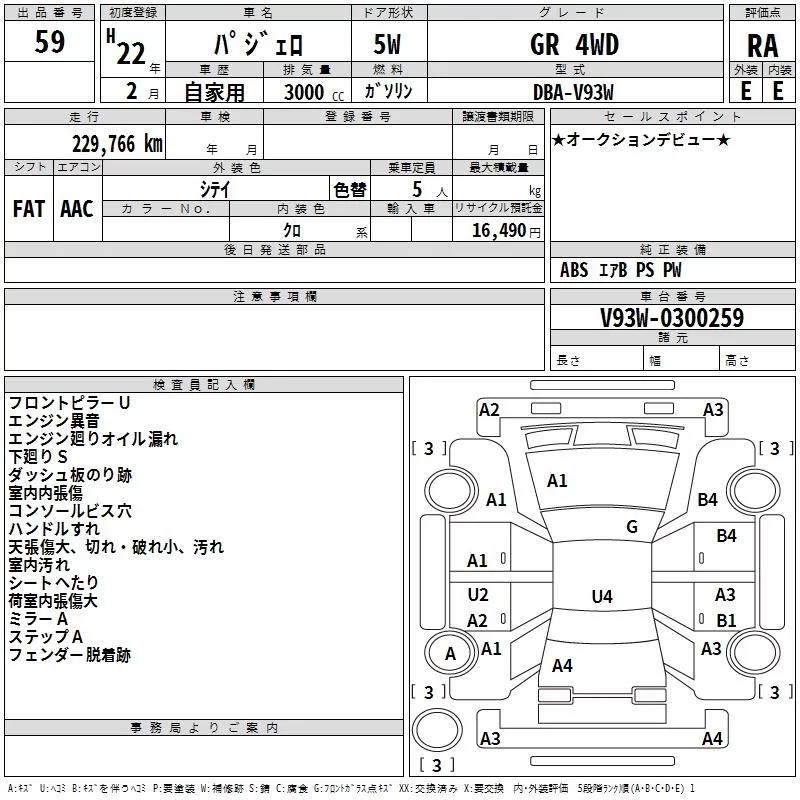 Mitsubishi PAJERO с аукциона Японии TAA Kanto лот № 59