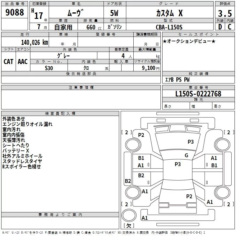 Daihatsu MOVE с аукциона Японии TAA Kanto лот № 9088