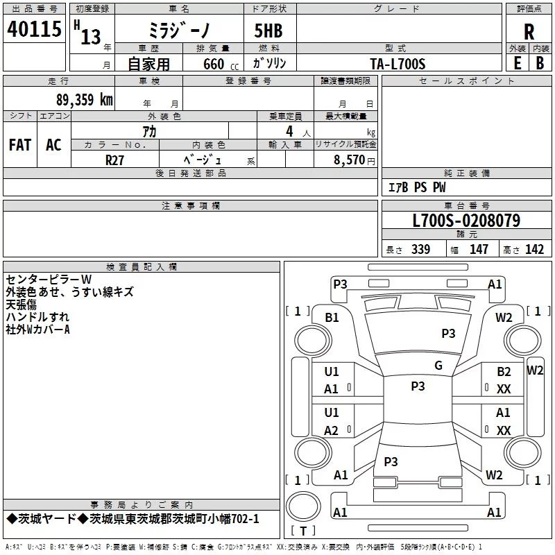 Daihatsu MIRA с аукциона Японии TAA Kanto лот № 40115