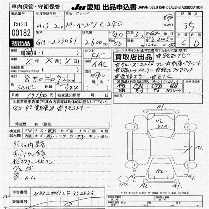 Mercedes-Benz C CLASS с аукциона Японии JU Aichi лот № 182