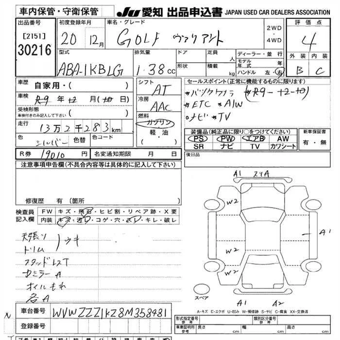 Volkswagen GOLF VARIANT с аукциона Японии JU Aichi лот № 30216