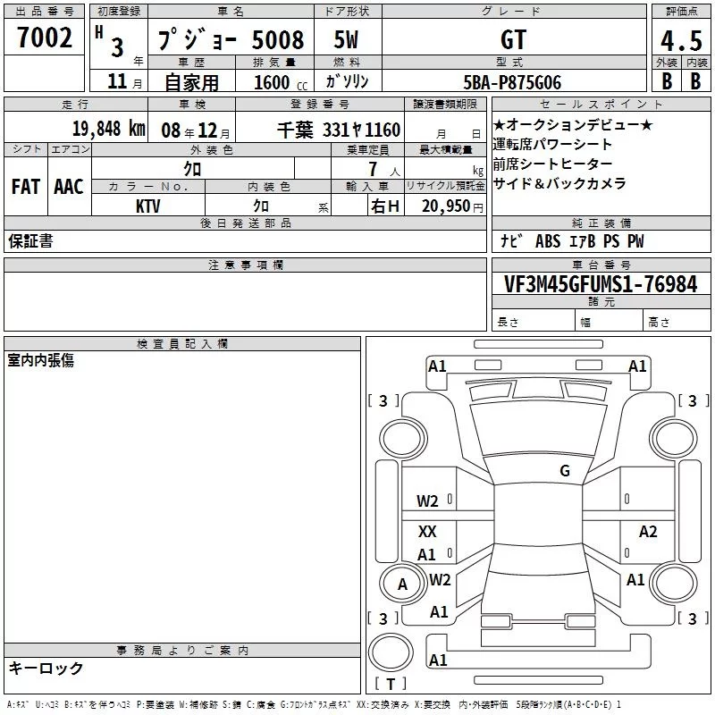 Peugeot 5008 с аукциона Японии TAA Kanto лот № 7002