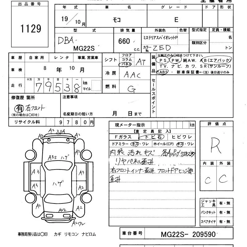 Nissan MOCO с аукциона Японии KCAA Yamaguchi лот № 1129
