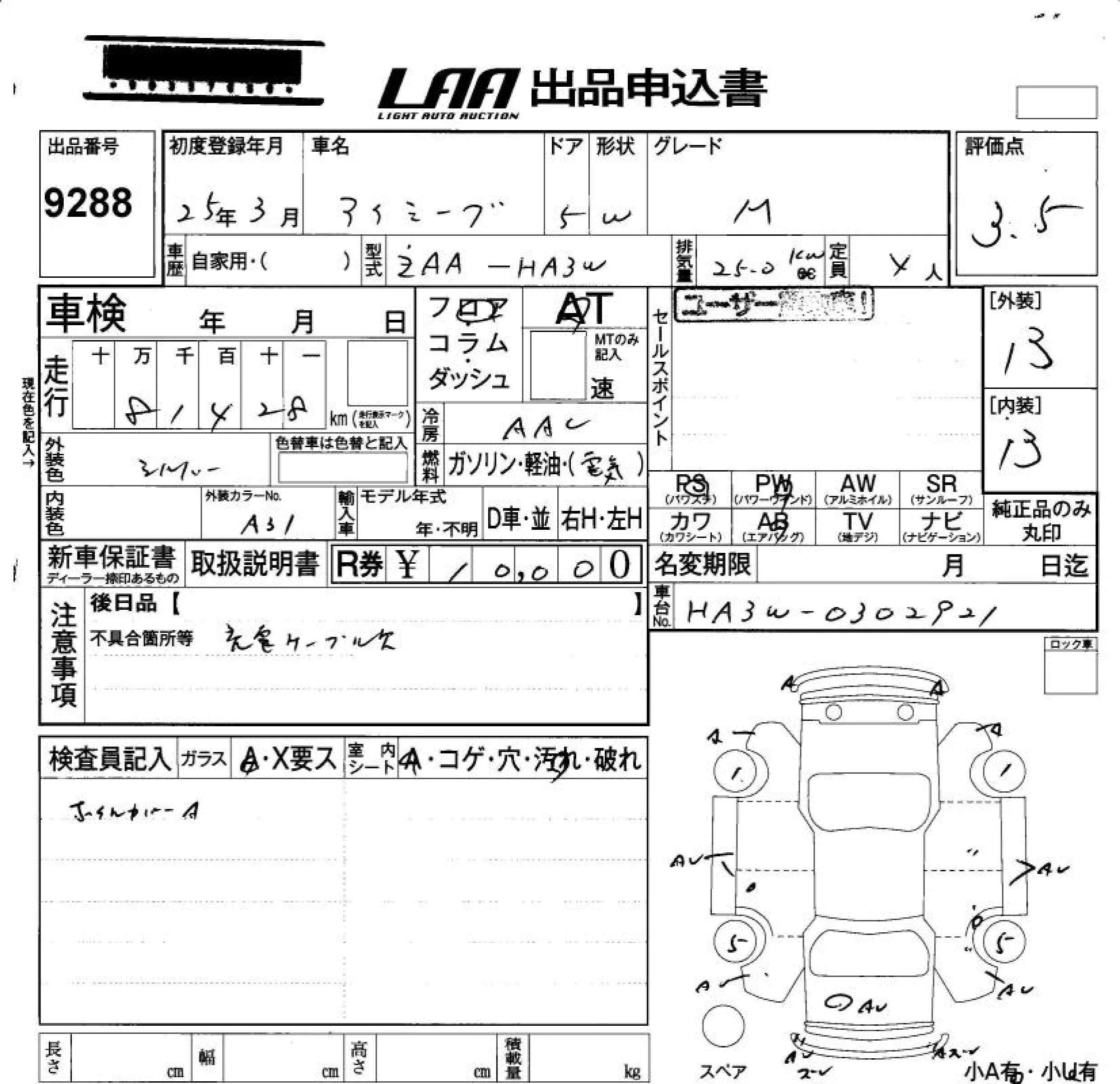 Mitsubishi I-MIEV с аукциона Японии LAA Okayama лот № 9288