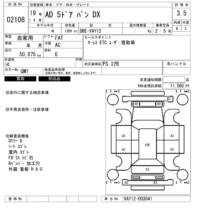 Nissan AD с аукциона Японии ARAI Bayside лот № 2108