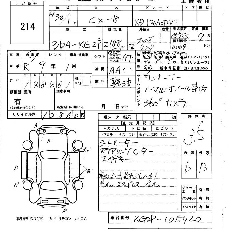 Mazda CX-8 с аукциона Японии KCAA Yamaguchi лот № 214