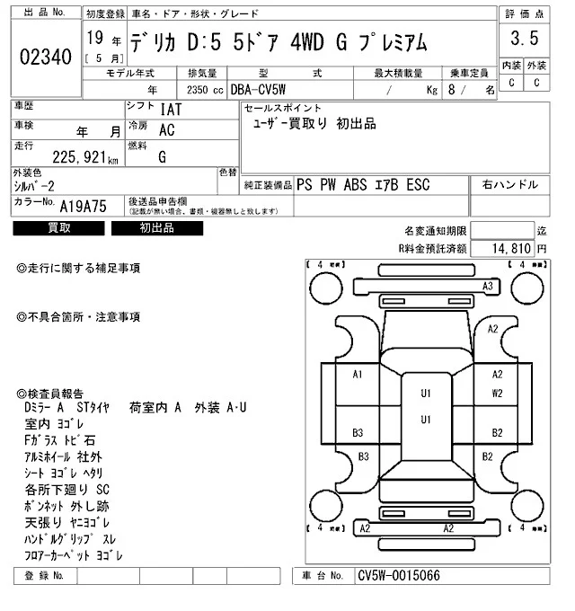 Mitsubishi DELICA D5 с аукциона Японии ARAI Bayside лот № 2340