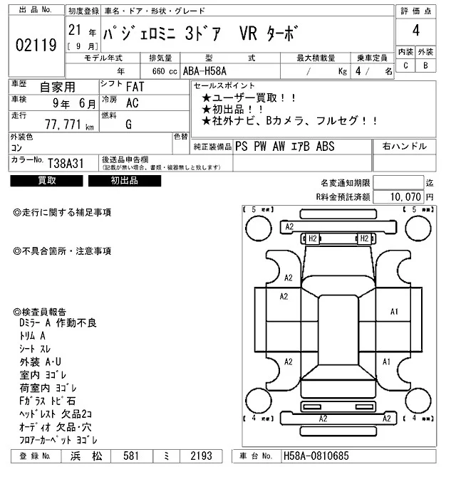 Mitsubishi PAJERO MINI с аукциона Японии ARAI Bayside лот № 2119