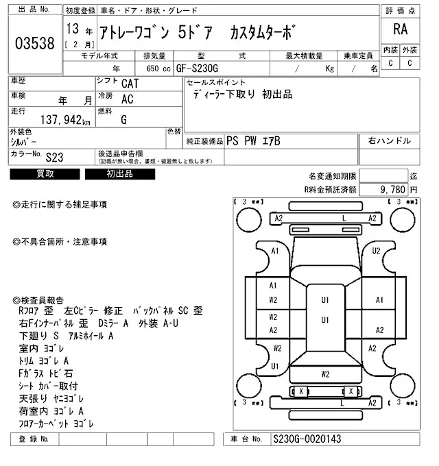 Daihatsu Atrai Wagon с аукциона Японии ARAI Bayside лот № 3538
