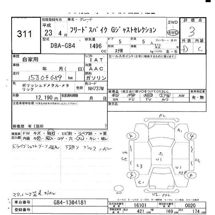 Honda FREED с аукциона Японии JU Hokkaido лот № 311