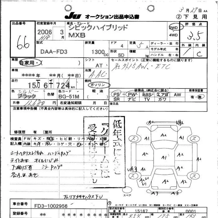 Honda CIVIC HYBRID с аукциона Японии JU Shimane лот № 66