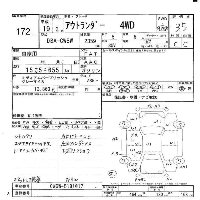 Mitsubishi OUTLANDER с аукциона Японии JU Hokkaido лот № 172