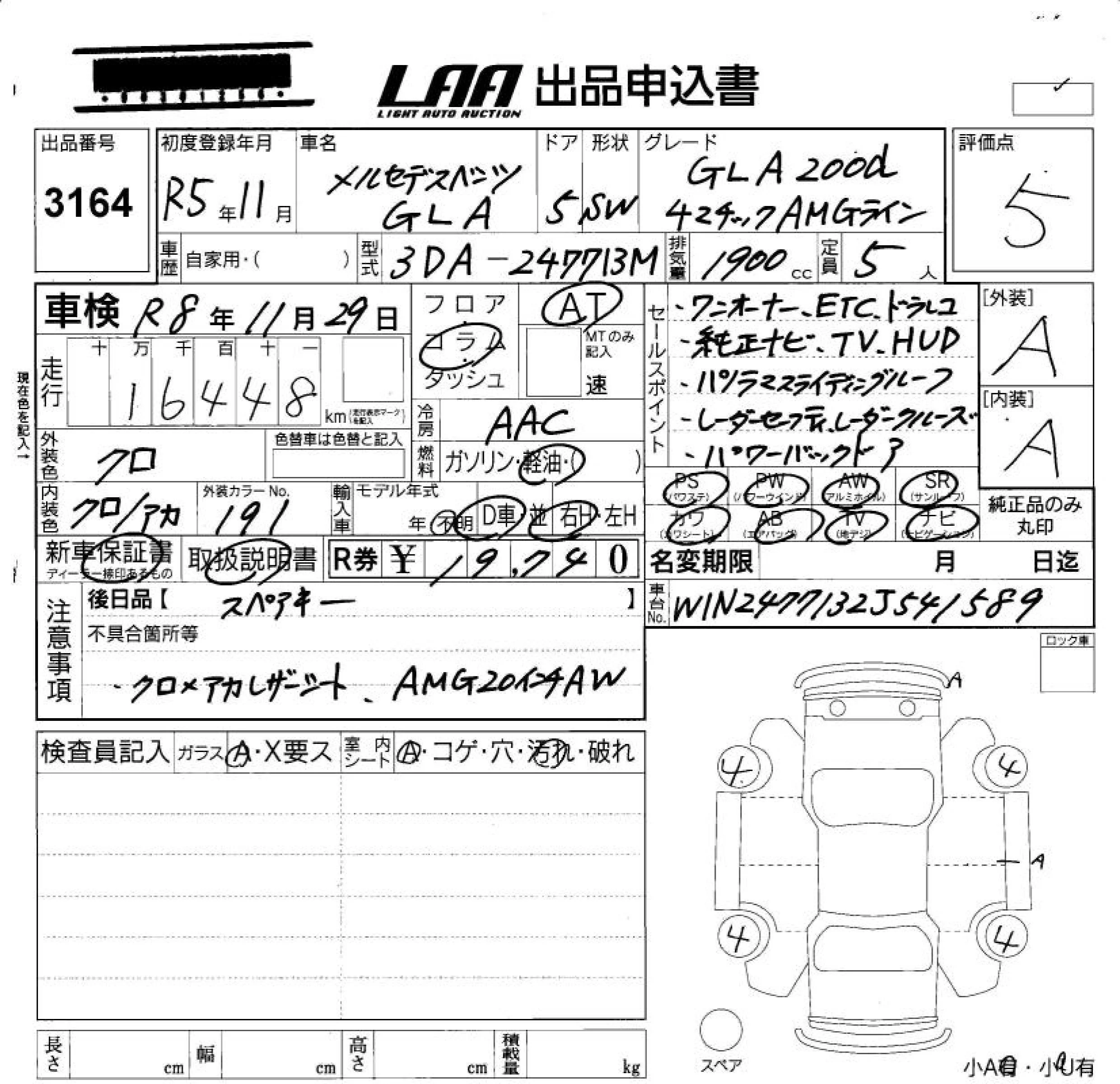 Mercedes-Benz GLA CLASS с аукциона Японии LAA Okayama лот № 3164