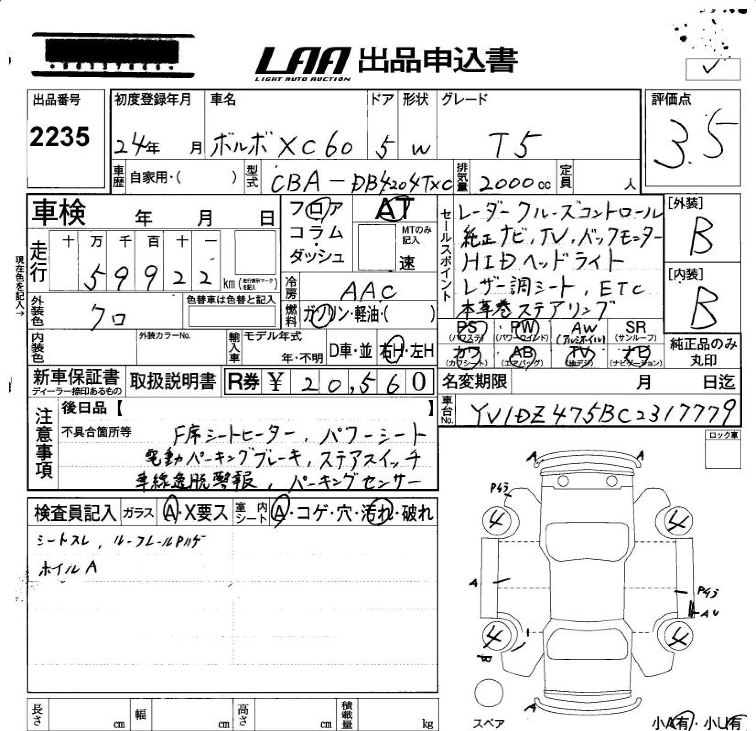 Volvo XC60 с аукциона Японии LAA Okayama лот № 2235