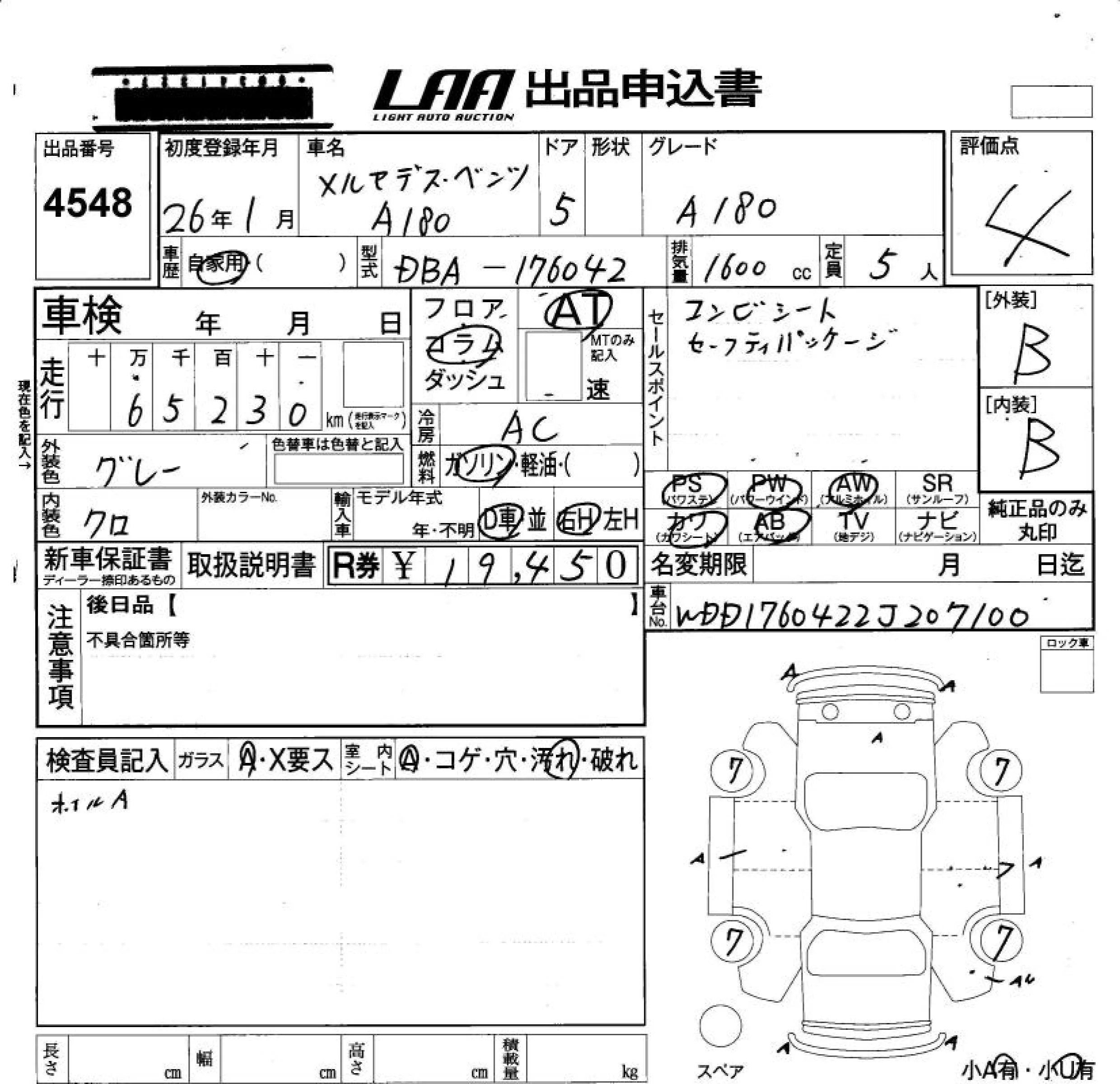 Mercedes-Benz A CLASS с аукциона Японии LAA Okayama лот № 4548