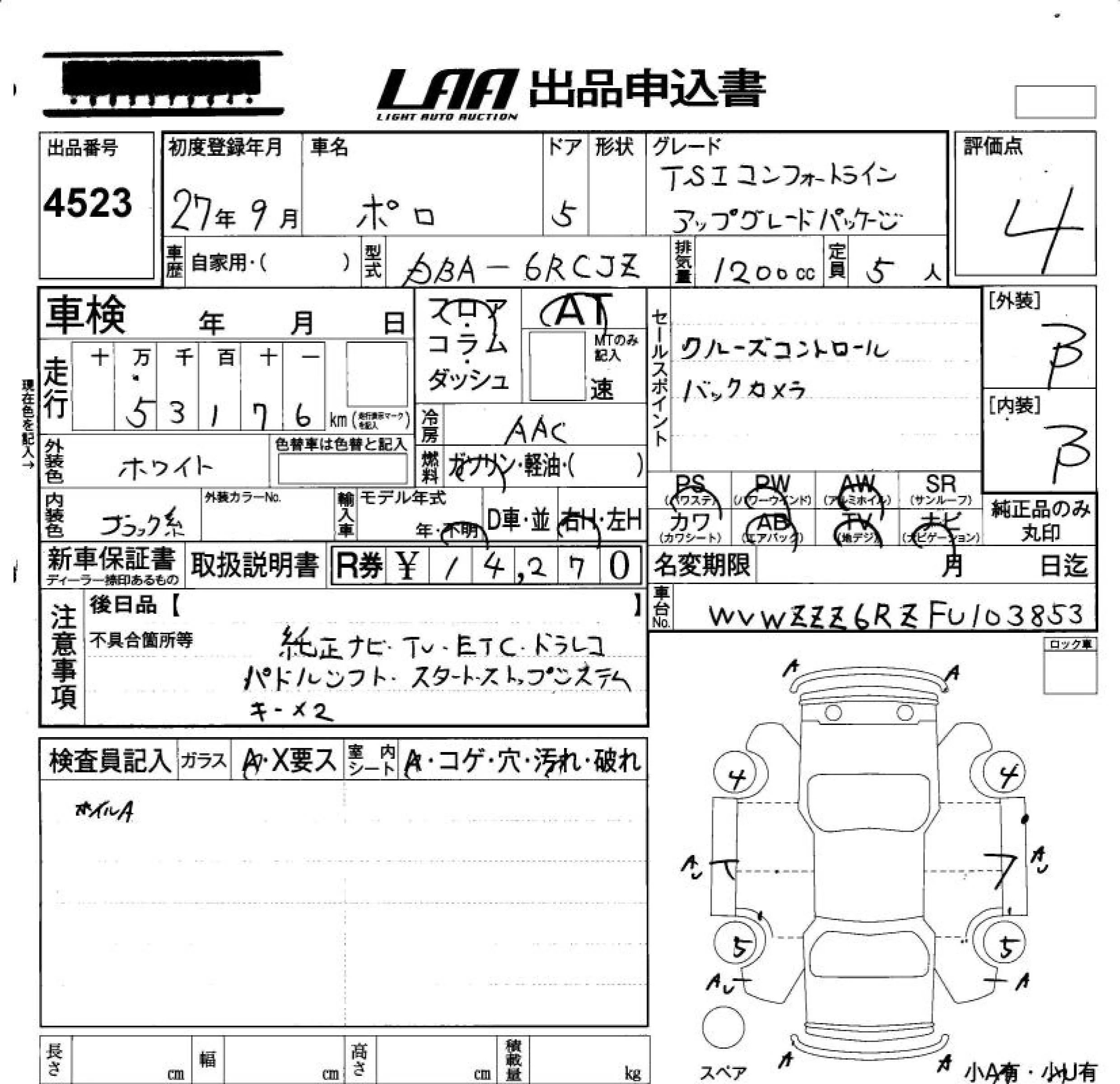 Volkswagen Polo с аукциона Японии LAA Okayama лот № 4523