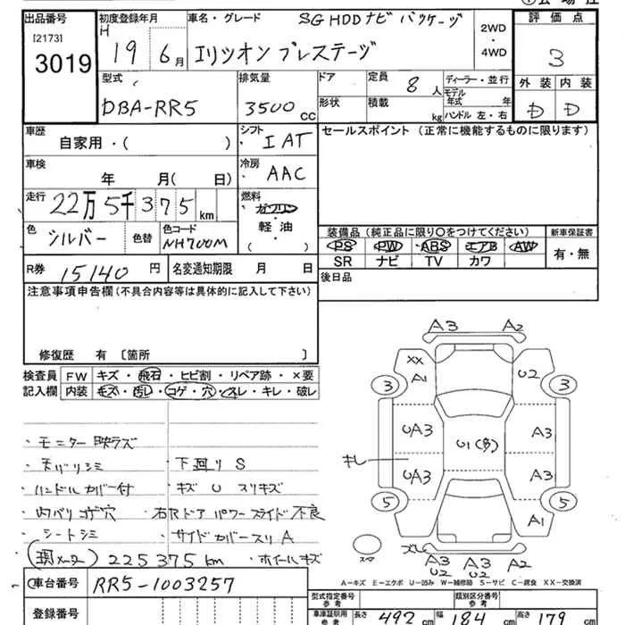 Honda ELYSION с аукциона Японии JU Tochigi лот № 3019