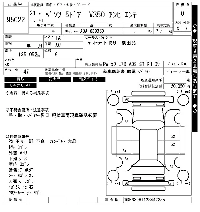 Mercedes-Benz V CLASS с аукциона Японии ARAI Bayside лот № 95022