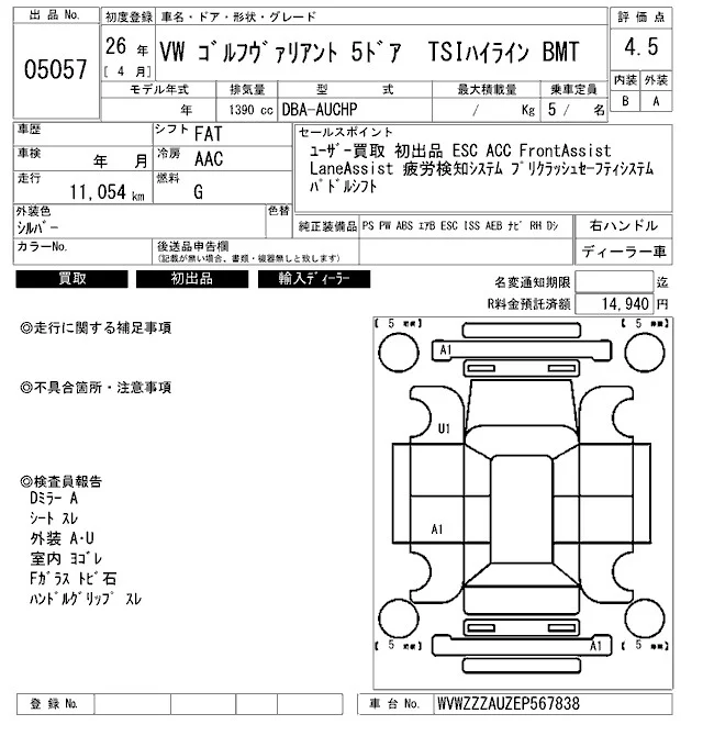 Volkswagen GOLF VARIANT с аукциона Японии ARAI Bayside лот № 5057