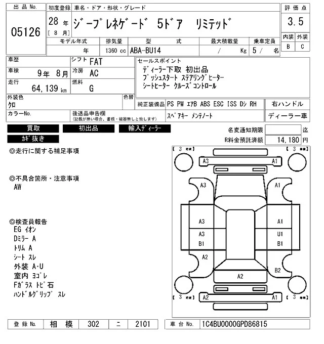 Chrysler JEEP RENEGADE с аукциона Японии ARAI Bayside лот № 5126